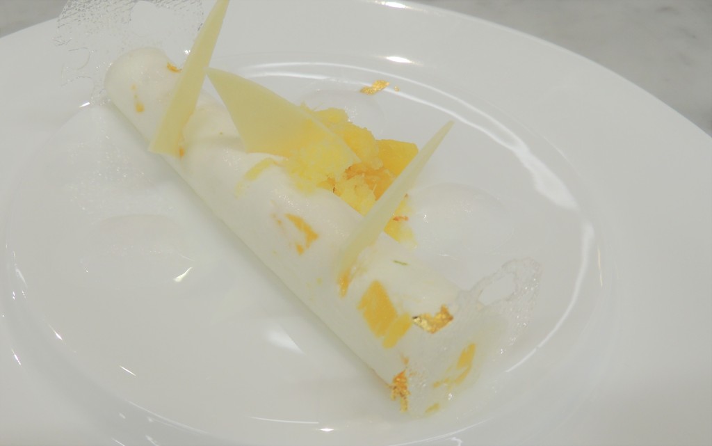 さわやかな柚子のムースにパイナップルとライムのコンポートを加えて