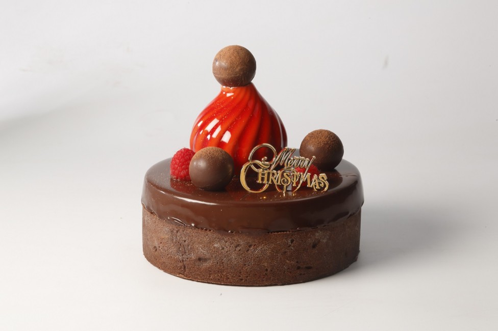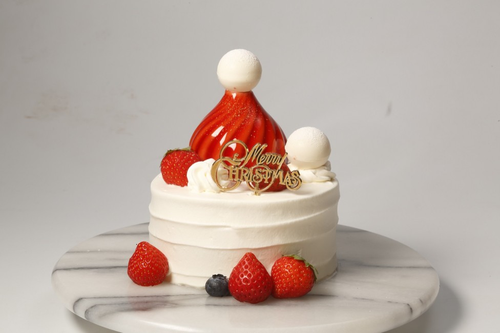 こちらも、可愛い赤いサンタの帽子がケーキを彩ります。