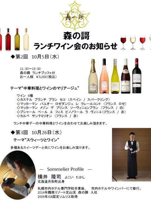 10月に開催される第2回ランチワイン会のお知らせです(^^)
