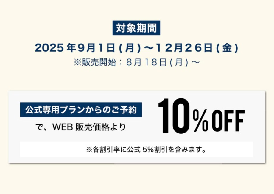 宿泊対象期間:2025年9月1日(月)~2025年12月26日(金) 宿泊分