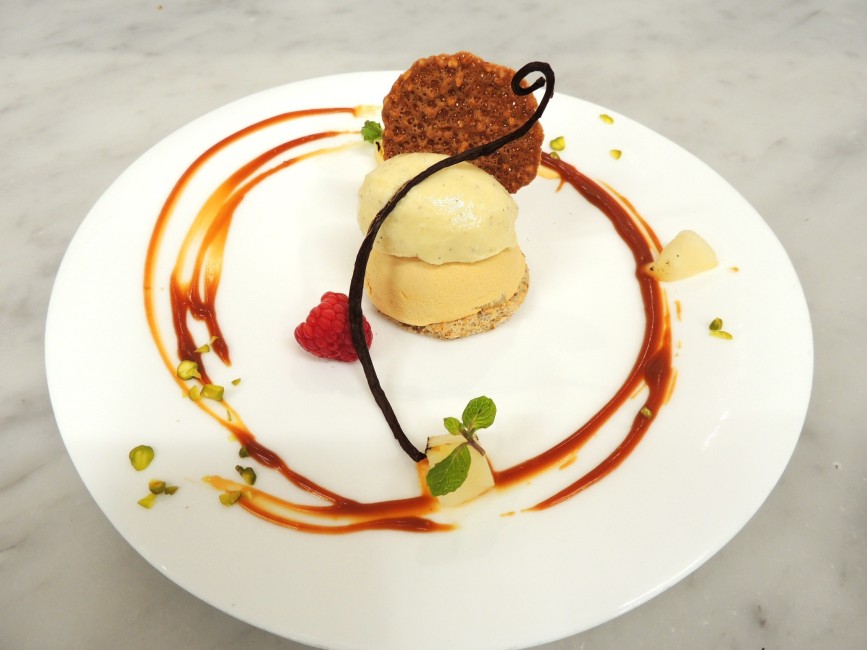ほろ苦いキャラメルムースに、バニラアイスを合わせた濃厚な味わいのスイーツです。